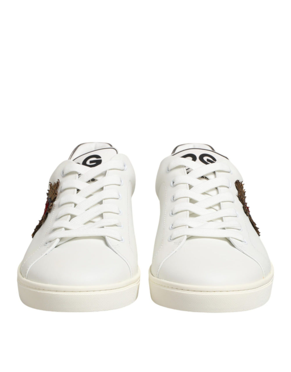 Dolce & Gabbana White Leather Heart Embellished Sneakers Shoes