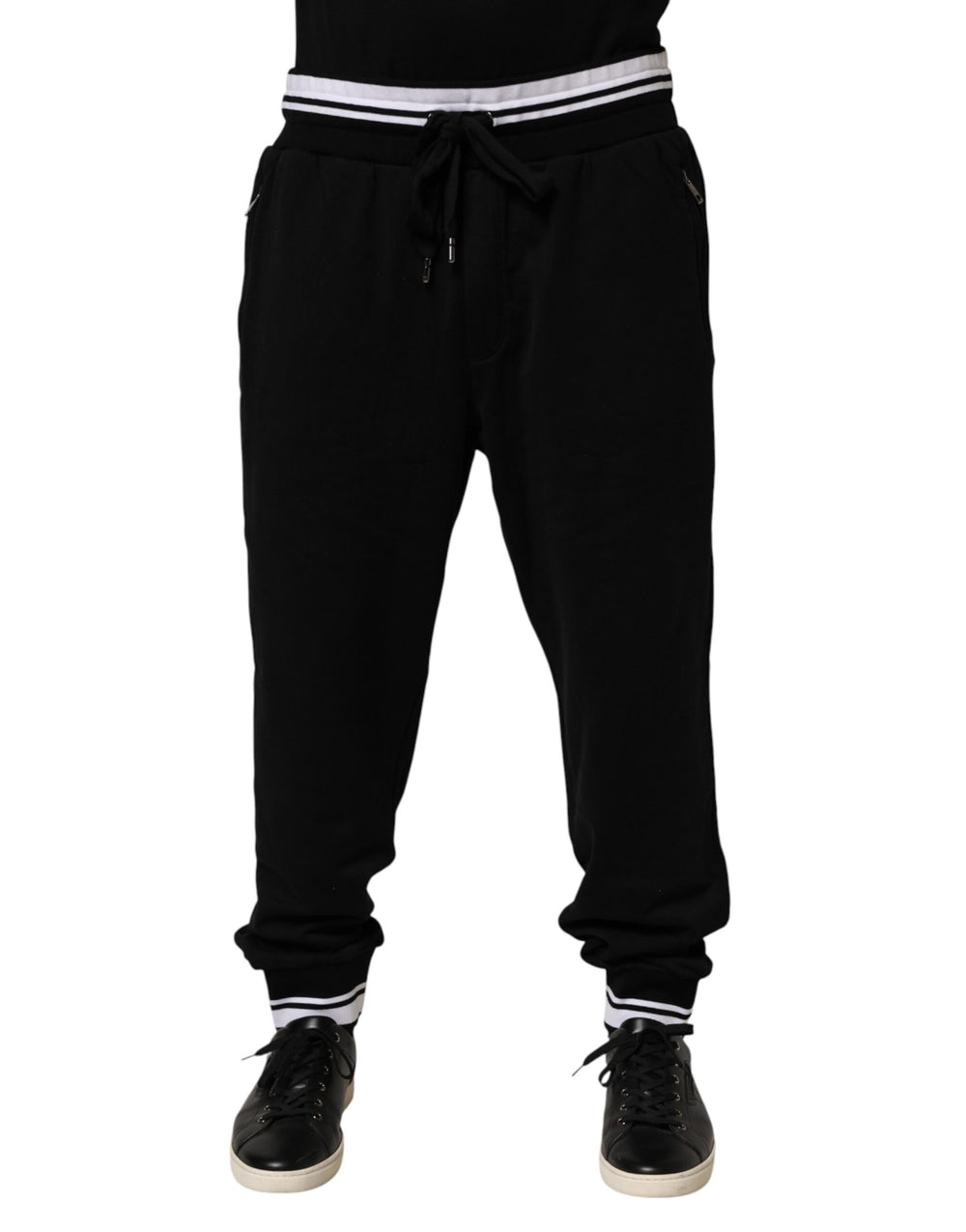 jogger pants showcase the brand’s signature Sacred Heart motif for a striking, symbolic touch. Designed with a mid-rise waist, elastic drawstring, and tapered leg, they combine sporty comfort with bold Italian style. Perfect for modern casual wear, these joggers elevate everyday looks with luxury detailing.
